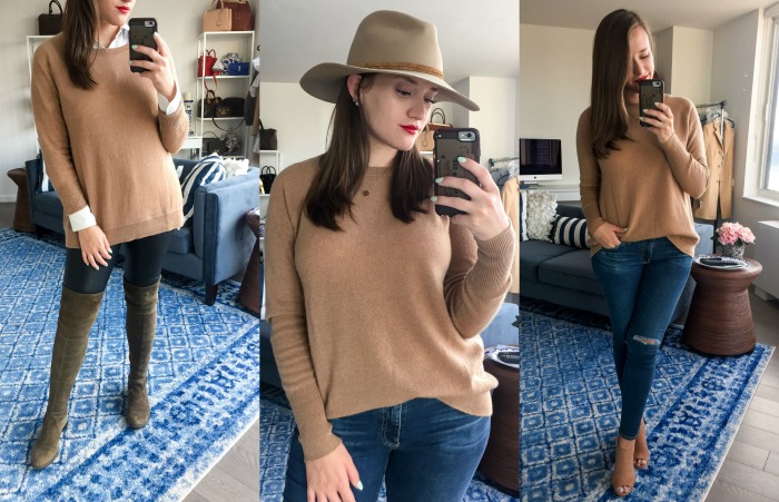 Thoughts: This sweater is SO SOFT -- I knew it was cashmere but I didn't know the quality of it. It's really really awesome. I want it in about 5 other colors because this is such a staple for fall. You can layer it or wear it on it's own. Really good investment and while $85 may seem pricey, cashmere usually runs $100+